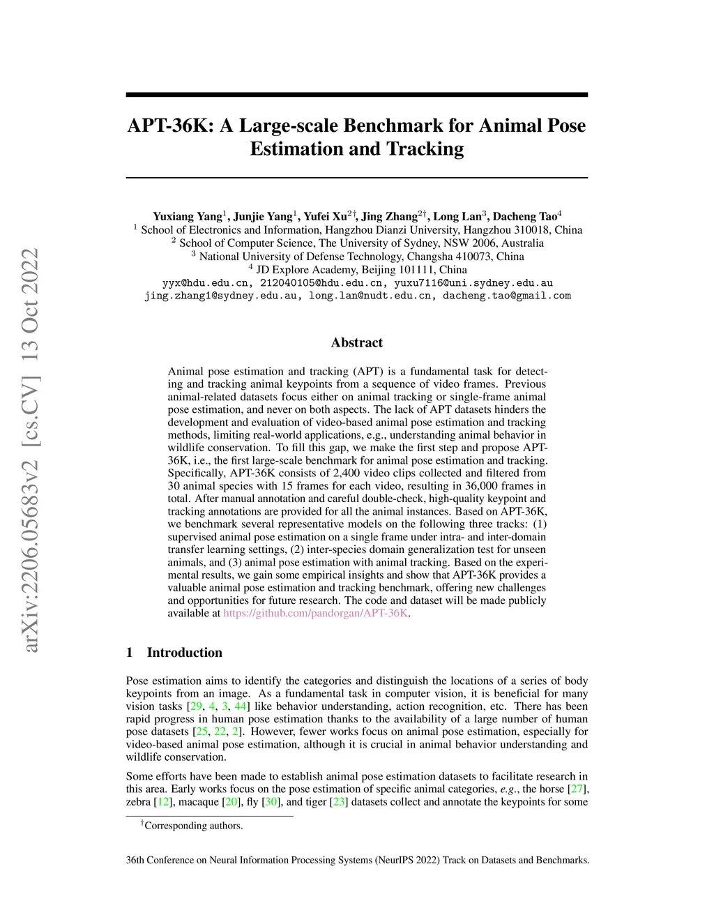 APT-36K: A Large-scale Benchmark for Animal Pose Estimation and Tracking