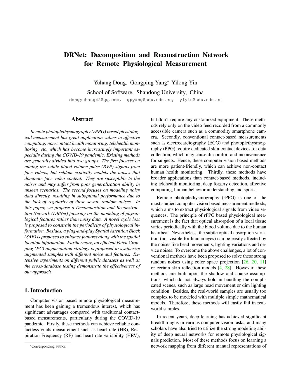 DRNet: Decomposition and Reconstruction Network for Remote Physiological