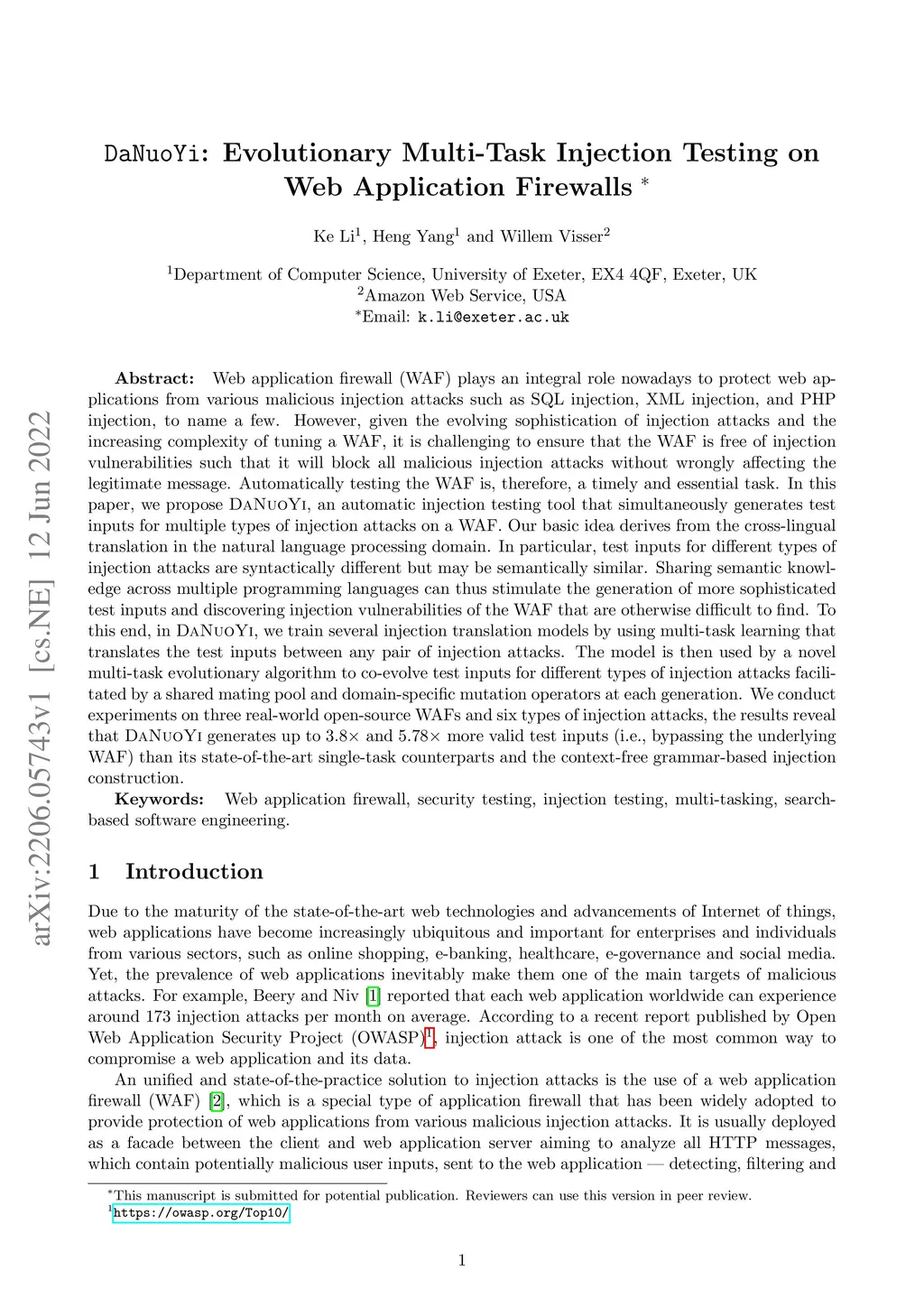 Web application firewall (WAF) plays an integral role nowadays to protect web applications from various malicious injection attacks such as SQL injection, XML injection, and PHP injection, to name a few. However, given the evolving sophistication of injection attacks and the increasing complexity of tuning a WAF, it is challenging to ensure that the WAF is free of injection vulnerabilities such that it will block all malicious injection attacks without wrongly affecting the legitimate message. Automatically testing the WAF is, therefore, a timely and essential task. In this paper, we propose DaNuoYi, an automatic injection testing tool that simultaneously generates test inputs for multiple types of injection attacks on a WAF. Our basic idea derives from the cross-lingual translation in the natural language processing domain. In particular, test inputs for different types of injection attacks are syntactically different but may be semantically similar. Sharing semantic knowledge across multiple programming languages can thus stimulate the generation of more sophisticated test inputs and discovering injection vulnerabilities of the WAF that are otherwise difficult to find. To this end, in DaNuoYi, we train several injection translation models by using multi-task learning that translates the test inputs between any pair of injection attacks. The model is then used by a novel multi-task evolutionary algorithm to co-evolve test inputs for different types of injection attacks facilitated by a shared mating pool and domain-specific mutation operators at each generation. We conduct experiments on three real-world open-source WAFs and six types of injection attacks, the results reveal that DaNuoYi generates up to 3.8x and 5.78x more valid test inputs (i.e., bypassing the underlying WAF) than its state-of-the-art single-task counterparts and the context-free grammar-based injection construction.