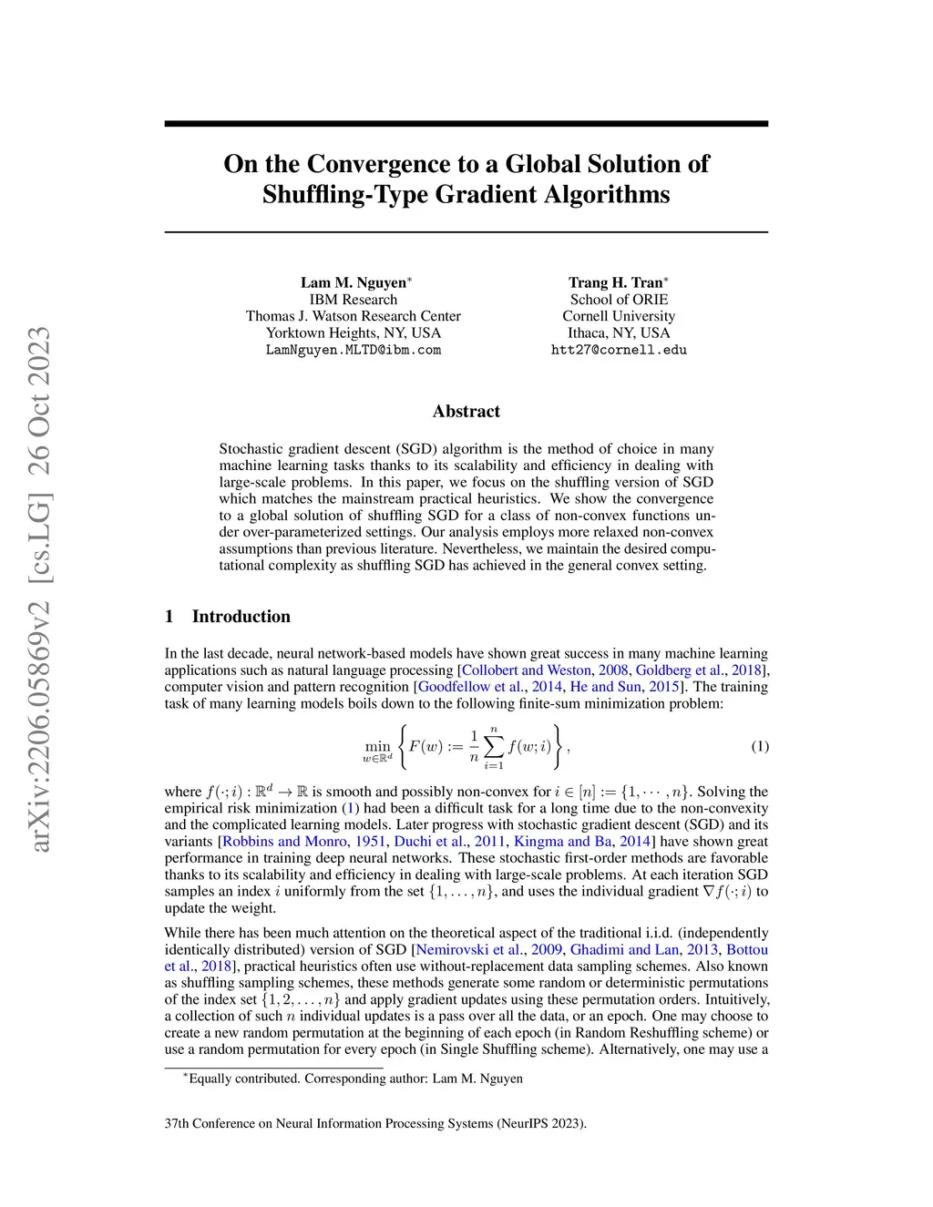 On the Convergence to a Global Solution of Shuffling-Type Gradient