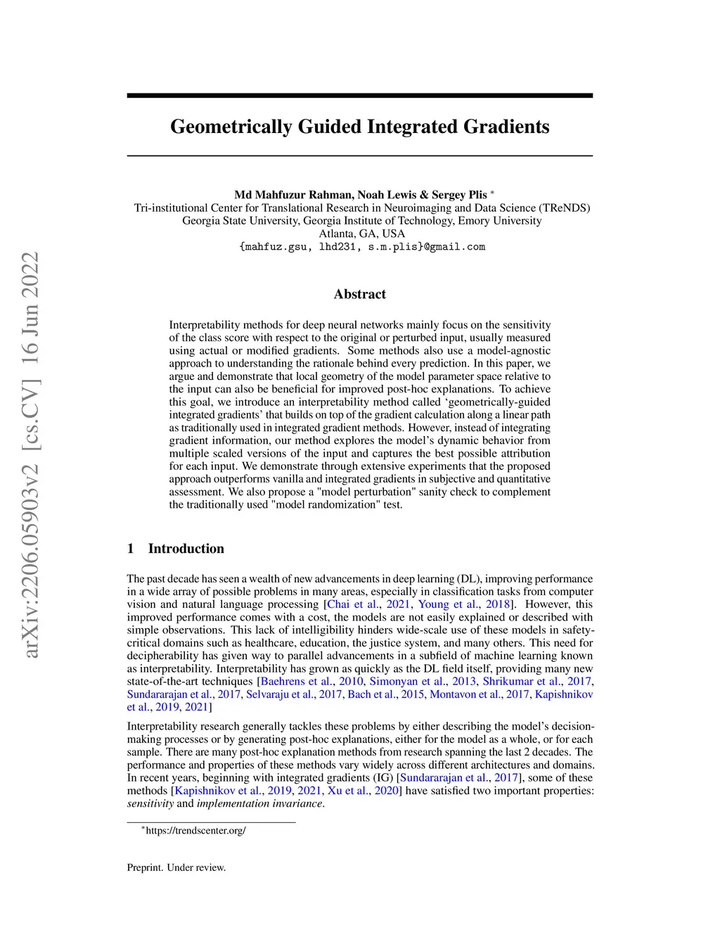 Interpretability methods for deep neural networks mainly focus on the sensitivity of the class score with respect to the original or perturbed input, usually measured using actual or modified gradients. Some methods also use a model-agnostic approach to understanding the rationale behind every prediction. In this paper, we argue and demonstrate that local geometry of the model parameter space relative to the input can also be beneficial for improved post-hoc explanations. To achieve this goal, we introduce an interpretability method called "geometrically-guided integrated gradients" that builds on top of the gradient calculation along a linear path as traditionally used in integrated gradient methods. However, instead of integrating gradient information, our method explores the model's dynamic behavior from multiple scaled versions of the input and captures the best possible attribution for each input. We demonstrate through extensive experiments that the proposed approach outperforms vanilla and integrated gradients in subjective and quantitative assessment. We also propose a "model perturbation" sanity check to complement the traditionally used "model randomization" test.