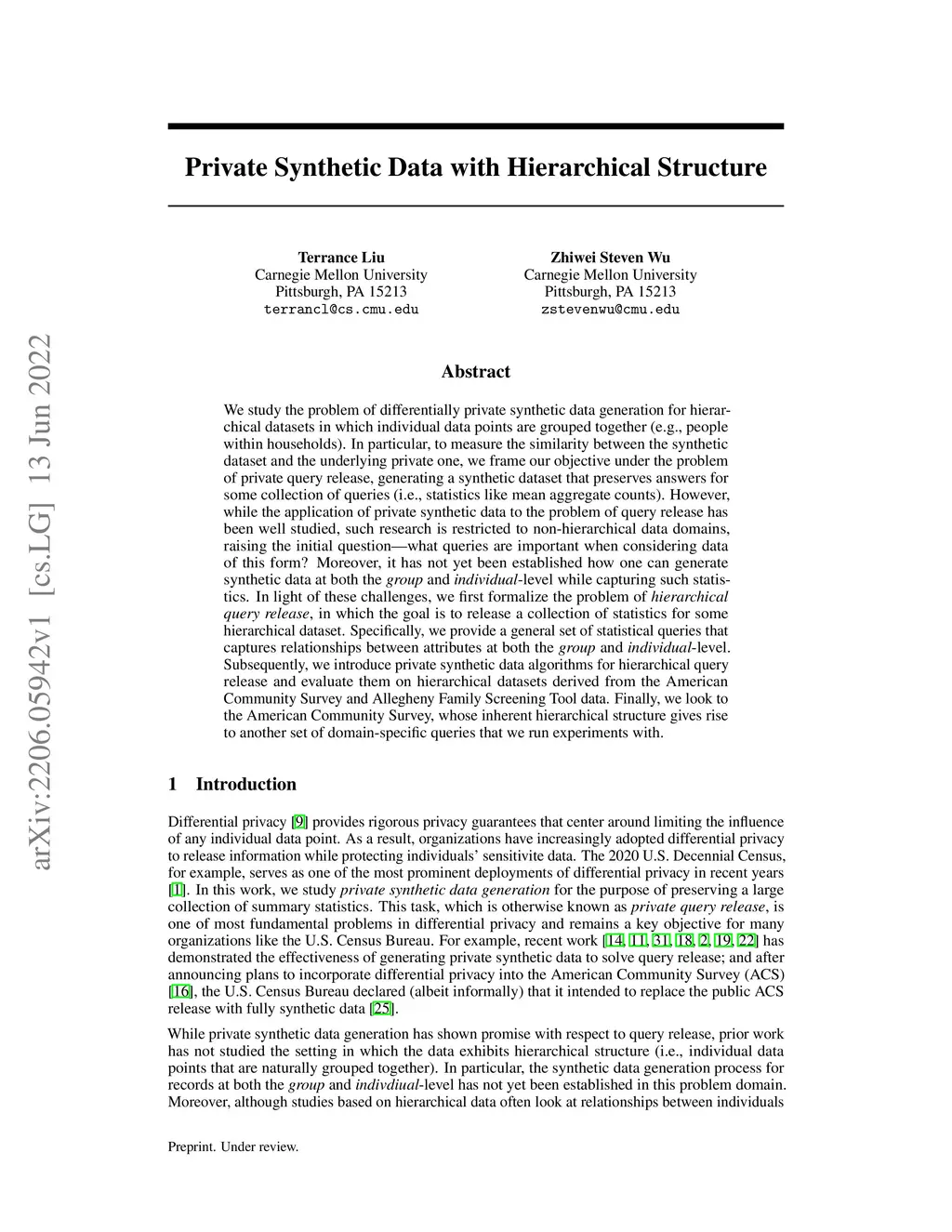 Private Synthetic Data with Hierarchical Structure