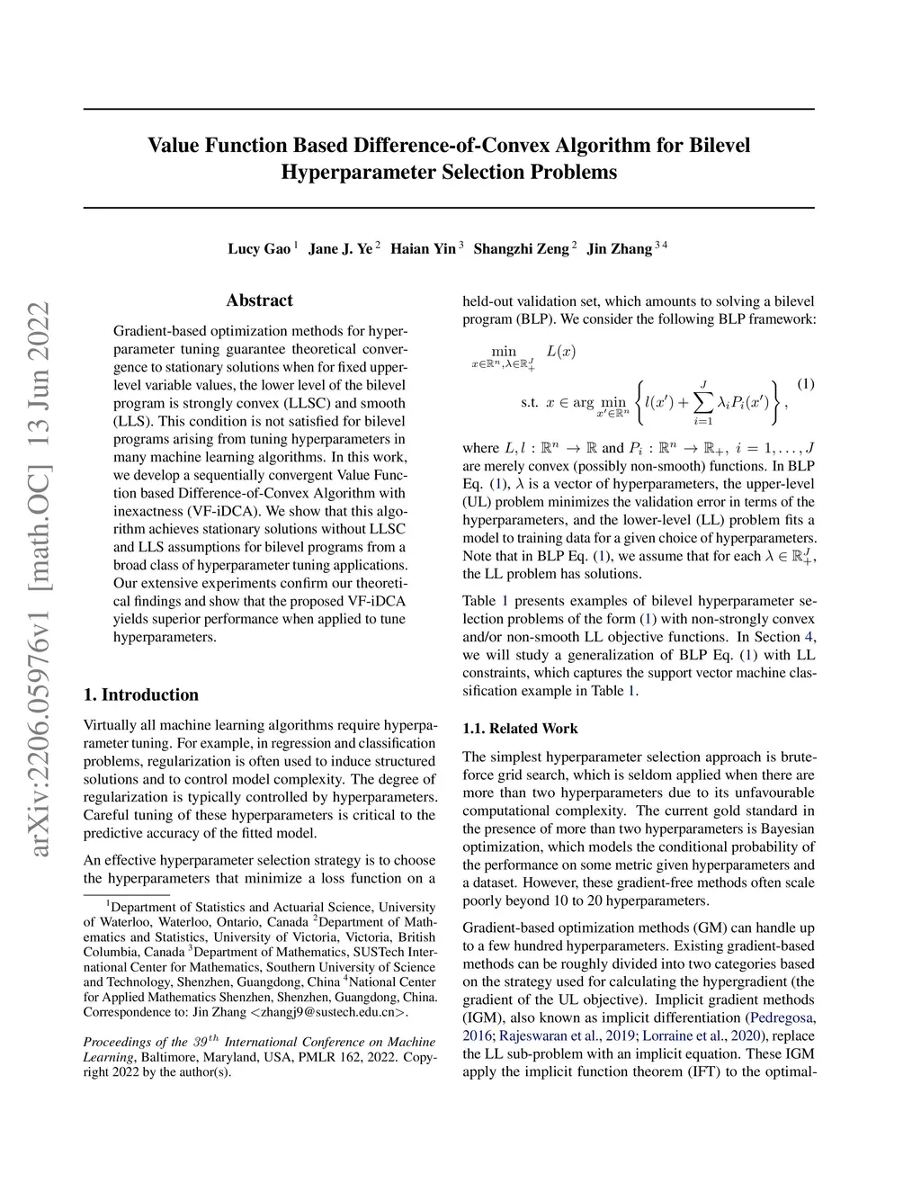 Gradient-based optimization methods for hyperparameter tuning guarantee theoretical convergence to stationary solutions when for fixed upper-level variable values, the lower level of the bilevel program is strongly convex (LLSC) and smooth (LLS). This condition is not satisfied for bilevel programs arising from tuning hyperparameters in many machine learning algorithms. In this work, we develop a sequentially convergent Value Function based Difference-of-Convex Algorithm with inexactness (VF-iDCA). We show that this algorithm achieves stationary solutions without LLSC and LLS assumptions for bilevel programs from a broad class of hyperparameter tuning applications. Our extensive experiments confirm our theoretical findings and show that the proposed VF-iDCA yields superior performance when applied to tune hyperparameters.