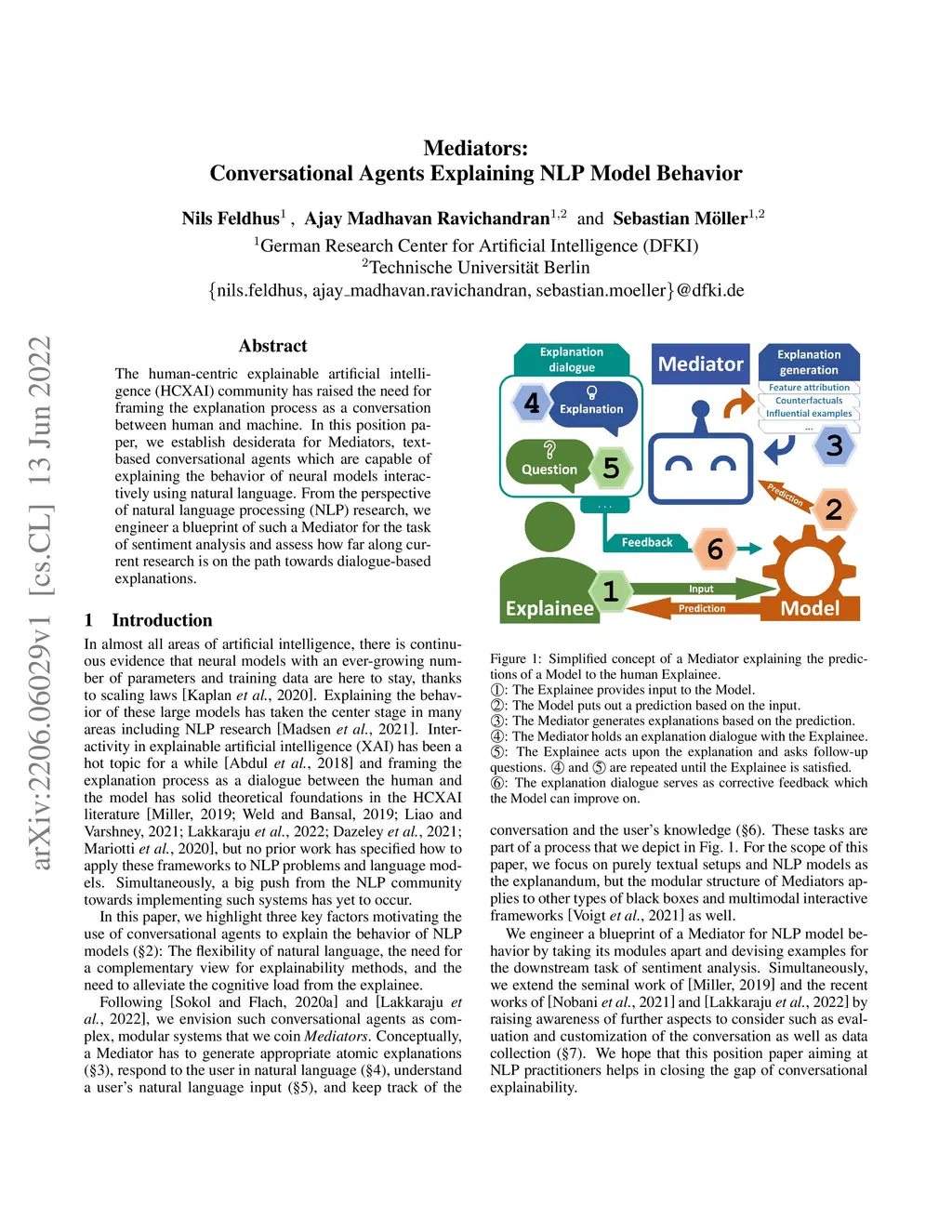 The human-centric explainable artificial intelligence (HCXAI) community has raised the need for framing the explanation process as a conversation between human and machine. In this position paper, we establish desiderata for Mediators, text-based conversational agents which are capable of explaining the behavior of neural models interactively using natural language. From the perspective of natural language processing (NLP) research, we engineer a blueprint of such a Mediator for the task of sentiment analysis and assess how far along current research is on the path towards dialogue-based explanations.