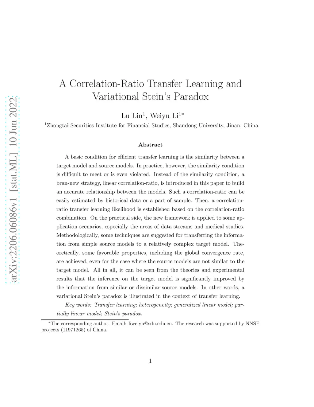 A Correlation-Ratio Transfer Learning and Variational Stein's Paradox