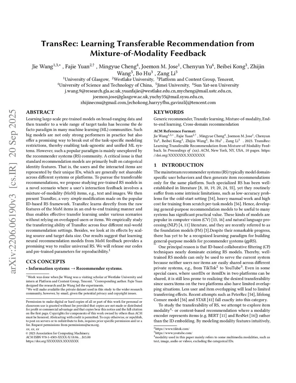 TransRec: Learning Transferable Recommendation from Mixture-of-Modality Feedback