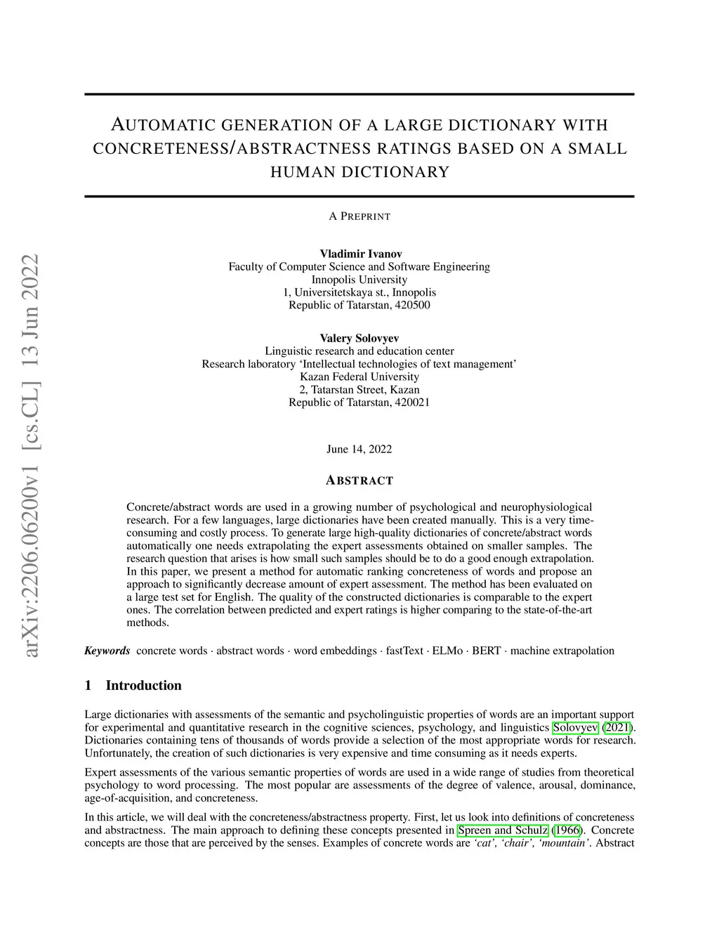 Concrete/abstract words are used in a growing number of psychological and neurophysiological research. For a few languages, large dictionaries have been created manually. This is a very time-consuming and costly process. To generate large high-quality dictionaries of concrete/abstract words automatically one needs extrapolating the expert assessments obtained on smaller samples. The research question that arises is how small such samples should be to do a good enough extrapolation. In this paper, we present a method for automatic ranking concreteness of words and propose an approach to significantly decrease amount of expert assessment. The method has been evaluated on a large test set for English. The quality of the constructed dictionaries is comparable to the expert ones. The correlation between predicted and expert ratings is higher comparing to the state-of-the-art methods.