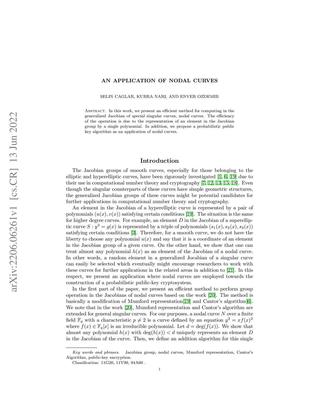 In this work, we present an efficient method for computing in the generalized Jacobian of special singular curves, nodal curves. The efficiency of the operation is due to the representation of an element in the Jacobian group by a single polynomial. In addition, we propose a probabilistic public key algorithm as an application of nodal curves.