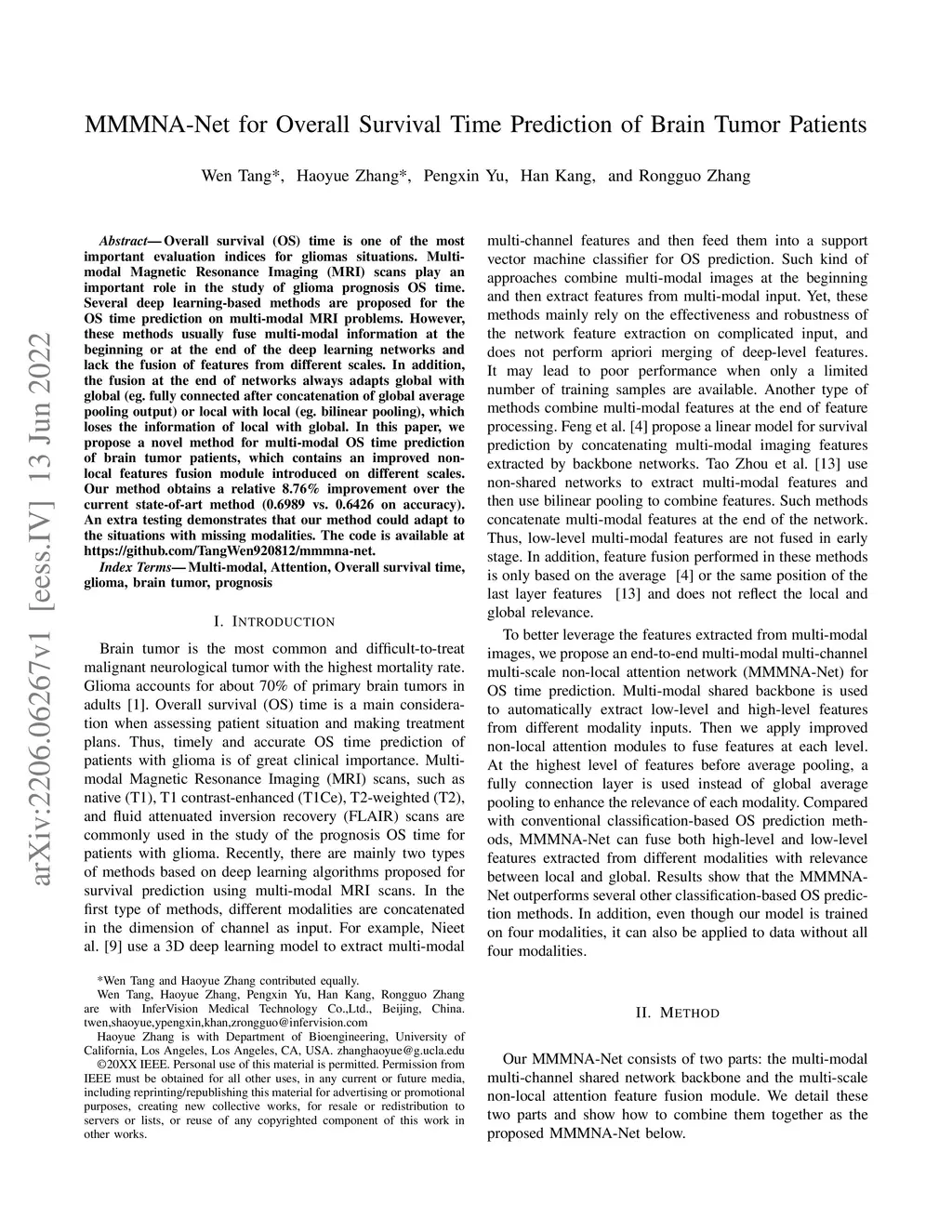 MMMNA-Net for Overall Survival Time Prediction of Brain Tumor Patients