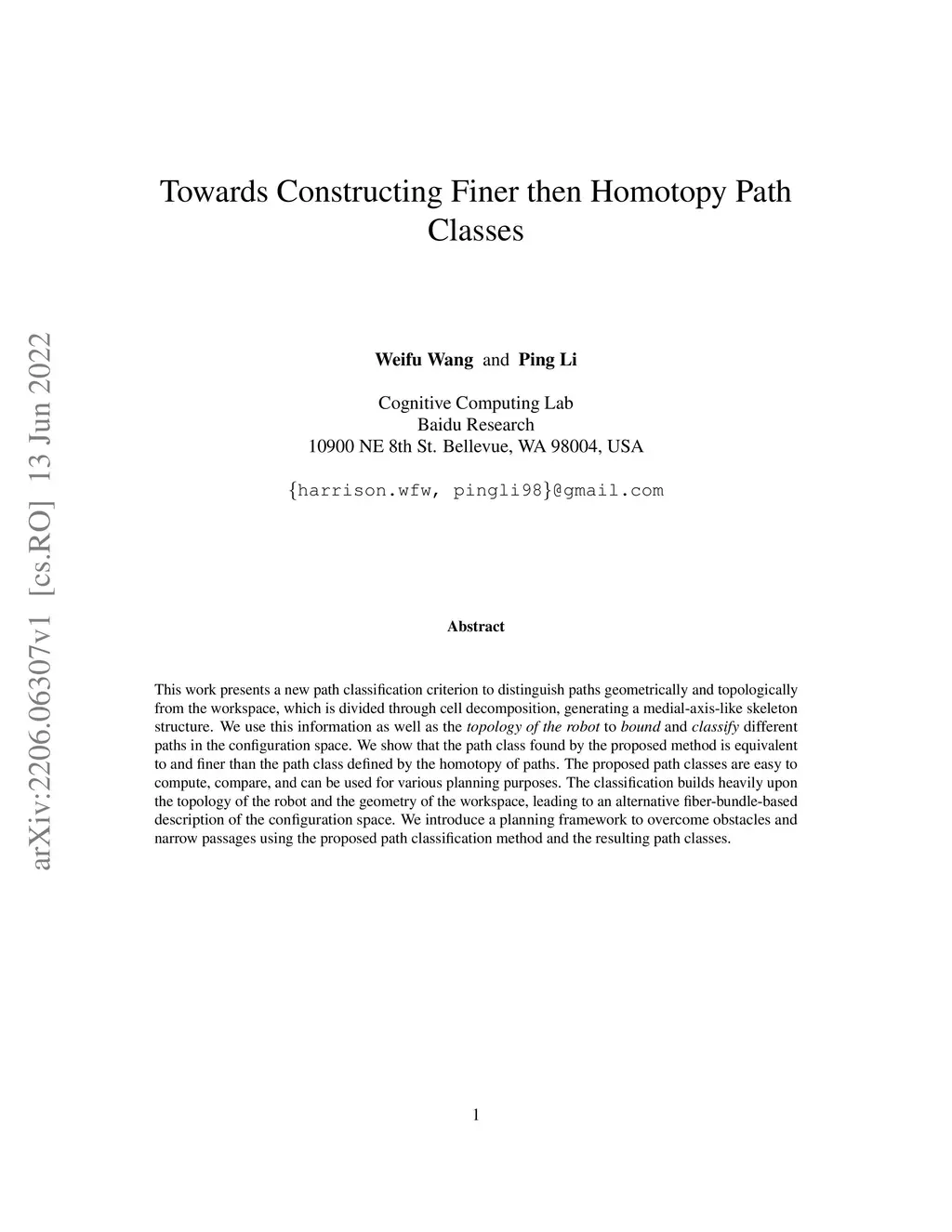 This work presents a new path classification criterion to distinguish paths geometrically and topologically from the workspace, which is divided through cell decomposition, generating a medial-axis-like skeleton structure. We use this information as well as the topology of the robot to bound and classify different paths in the configuration space. We show that the path class found by the proposed method is equivalent to and finer than the path class defined by the homotopy of paths. The proposed path classes are easy to compute, compare, and can be used for various planning purposes. The classification builds heavily upon the topology of the robot and the geometry of the workspace, leading to an alternative fiber-bundle-based description of the configuration space. We introduce a planning framework to overcome obstacles and narrow passages using the proposed path classification method and the resulting path classes.