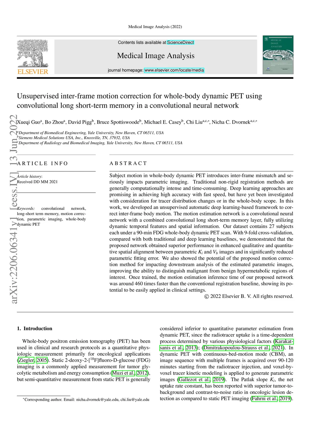 Unsupervised inter-frame motion correction for whole-body dynamic PET
