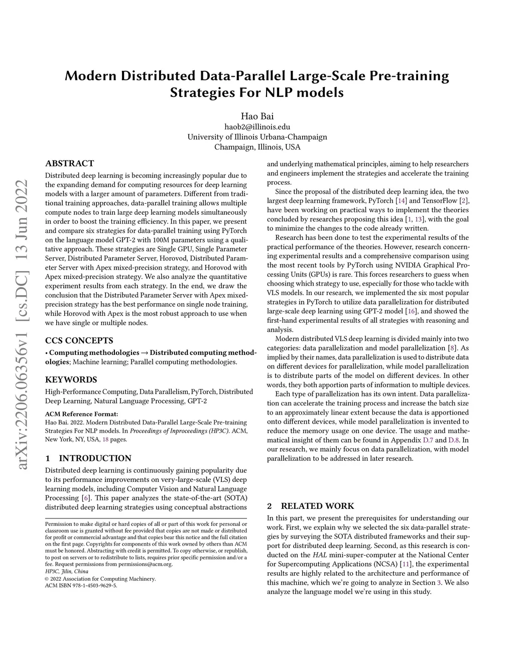 Distributed deep learning is becoming increasingly popular due to the expanding demand for computing resources for deep learning models with a larger amount of parameters. Different from traditional training approaches, data-parallel training allows multiple compute nodes to train large deep learning models simultaneously in order to boost the training efficiency. In this paper, we present and compare six strategies for data-parallel training using PyTorch on the language model GPT-2 with 100M parameters using a qualitative approach. These strategies are Single GPU, Single Parameter Server, Distributed Parameter Server, Horovod, Distributed Parameter Server with Apex mixed-precision strategy, and Horovod with Apex mixed-precision strategy. We also analyze the quantitative experiment results from each strategy. In the end, we draw the conclusion that the Distributed Parameter Server with Apex mixedprecision strategy has the best performance on single node training, while Horovod with Apex is the most robust approach to use when we have single or multiple nodes.
