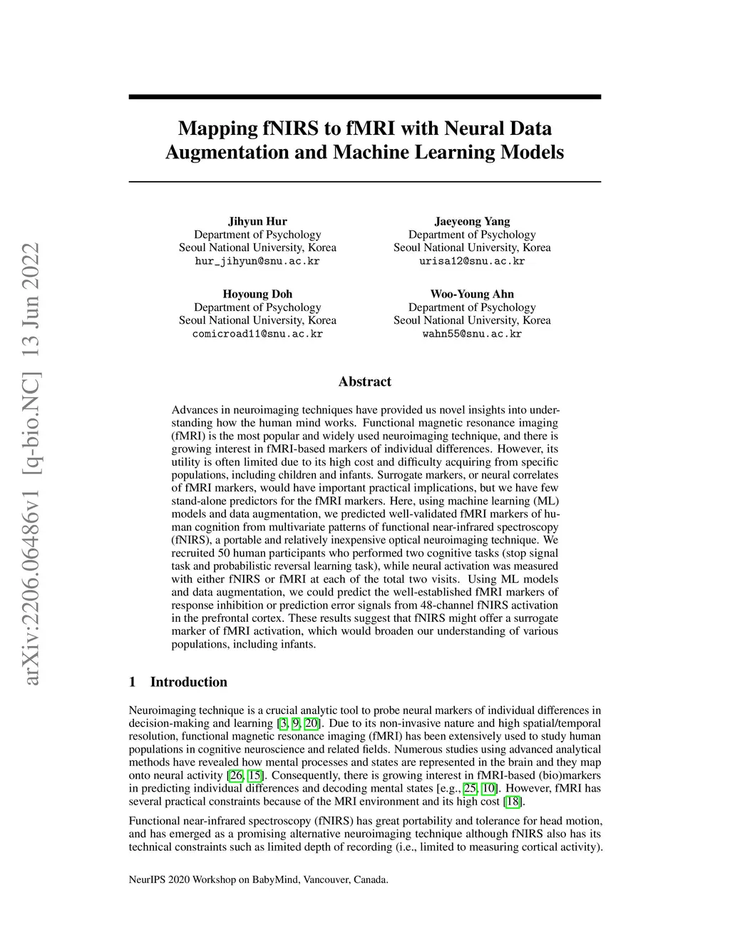 Mapping fNIRS to fMRI with Neural Data Augmentation and Machine Learning