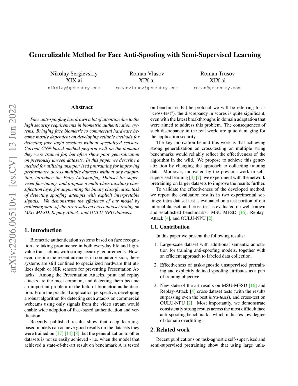 Generalizable Method for Face Anti-Spoofing with Semi-Supervised