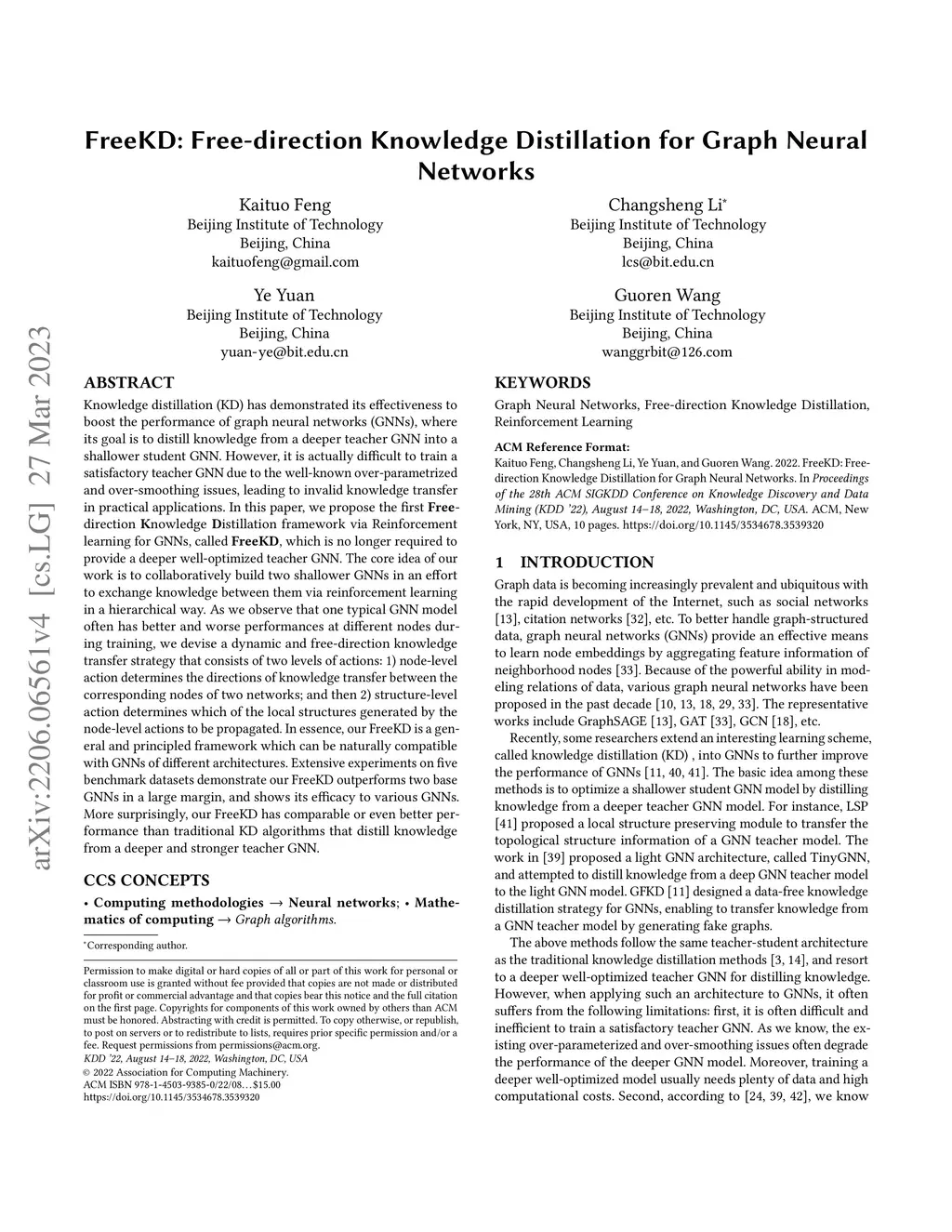 FreeKD: Free-direction Knowledge Distillation for Graph Neural Networks