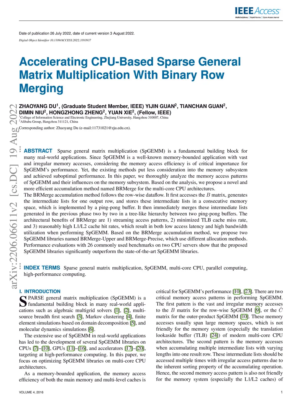 Accelerating CPU-Based Sparse General Matrix Multiplication With Binary
