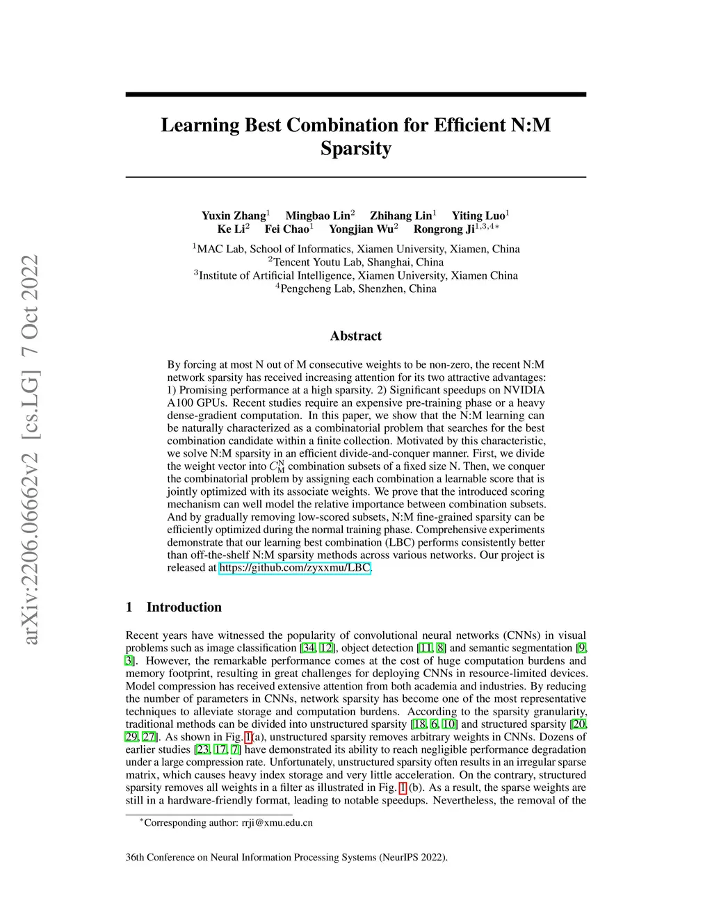 Learning Best Combination for Efficient N:M Sparsity