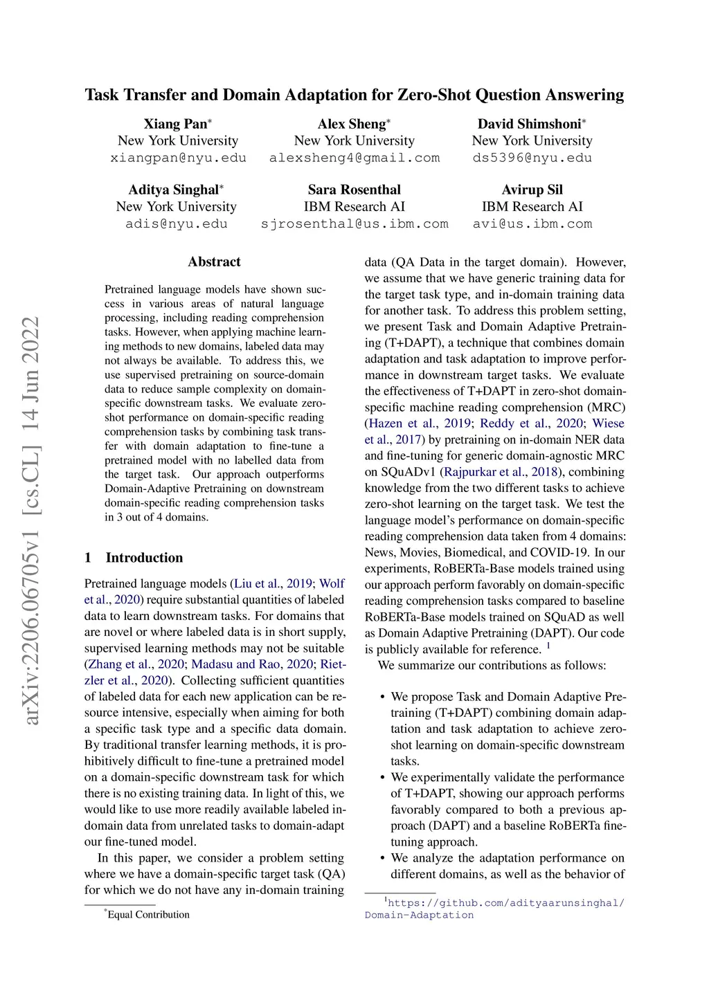 Task Transfer and Domain Adaptation for Zero-Shot Question Answering