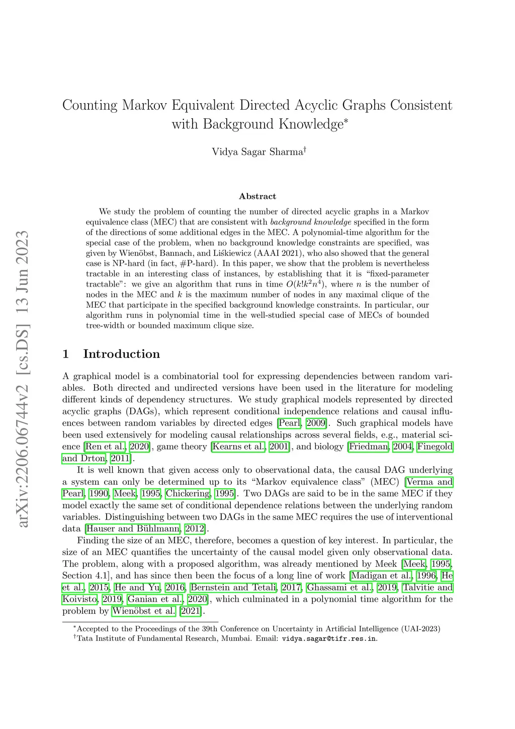 Counting Markov Equivalent Directed Acyclic Graphs Consistent with