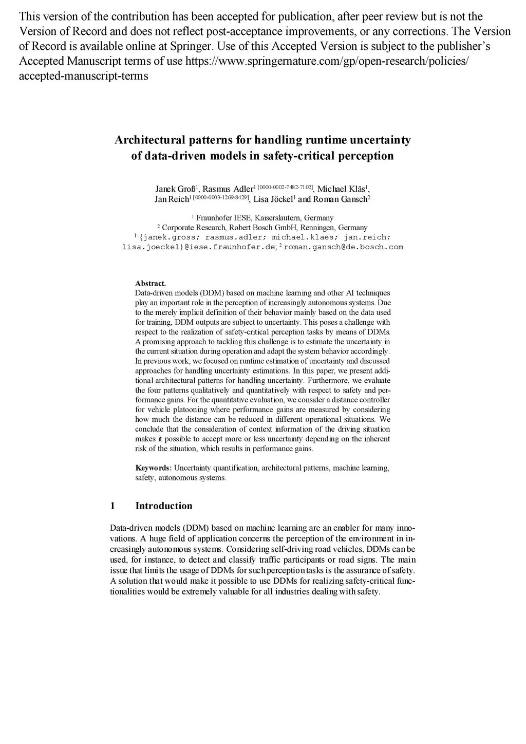Architectural patterns for handling runtime uncertainty of data-driven