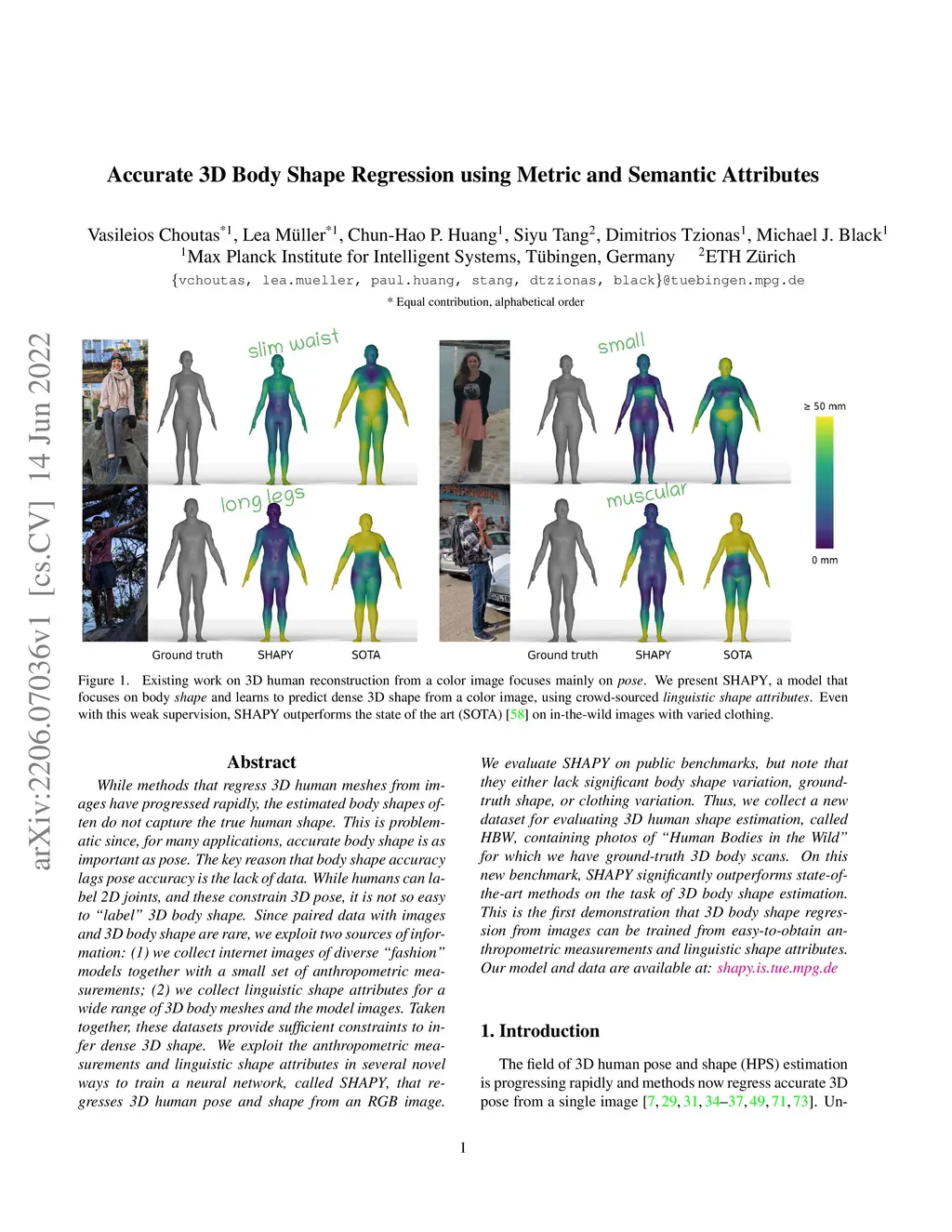 While methods that regress 3D human meshes from images have progressed rapidly, the estimated body shapes often do not capture the true human shape. This is problematic since, for many applications, accurate body shape is as important as pose. The key reason that body shape accuracy lags pose accuracy is the lack of data. While humans can label 2D joints, and these constrain 3D pose, it is not so easy to "label" 3D body shape. Since paired data with images and 3D body shape are rare, we exploit two sources of information: (1) we collect internet images of diverse "fashion" models together with a small set of anthropometric measurements; (2) we collect linguistic shape attributes for a wide range of 3D body meshes and the model images. Taken together, these datasets provide sufficient constraints to infer dense 3D shape. We exploit the anthropometric measurements and linguistic shape attributes in several novel ways to train a neural network, called SHAPY, that regresses 3D human pose and shape from an RGB image. We evaluate SHAPY on public benchmarks, but note that they either lack significant body shape variation, ground-truth shape, or clothing variation. Thus, we collect a new dataset for evaluating 3D human shape estimation, called HBW, containing photos of "Human Bodies in the Wild" for which we have ground-truth 3D body scans. On this new benchmark, SHAPY significantly outperforms state-of-the-art methods on the task of 3D body shape estimation. This is the first demonstration that 3D body shape regression from images can be trained from easy-to-obtain anthropometric measurements and linguistic shape attributes. Our model and data are available at: shapy.is.tue.mpg.de