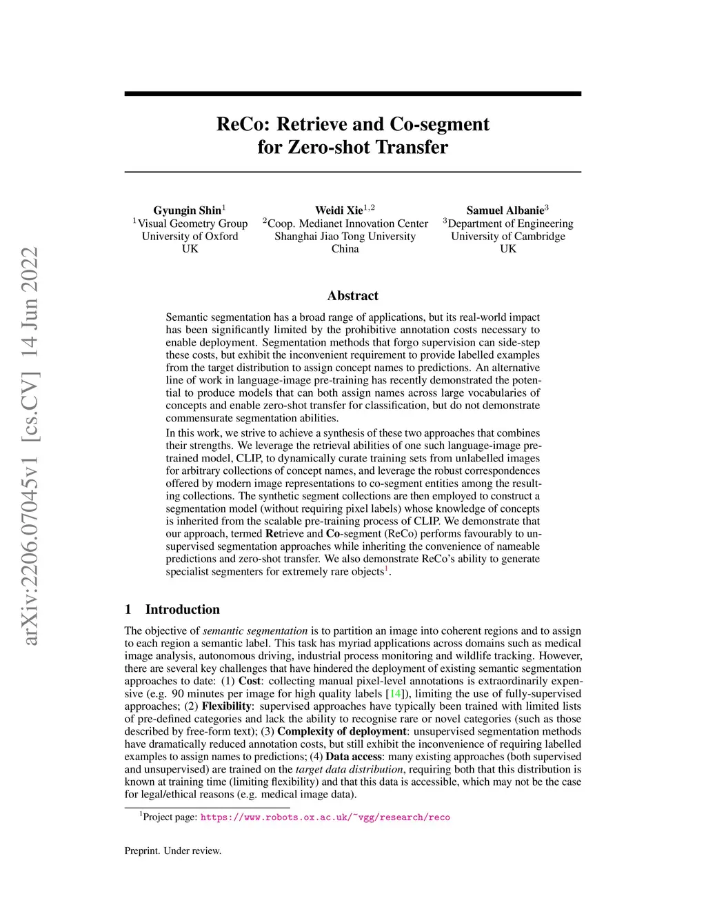 ReCo: Retrieve and Co-segment for Zero-shot Transfer