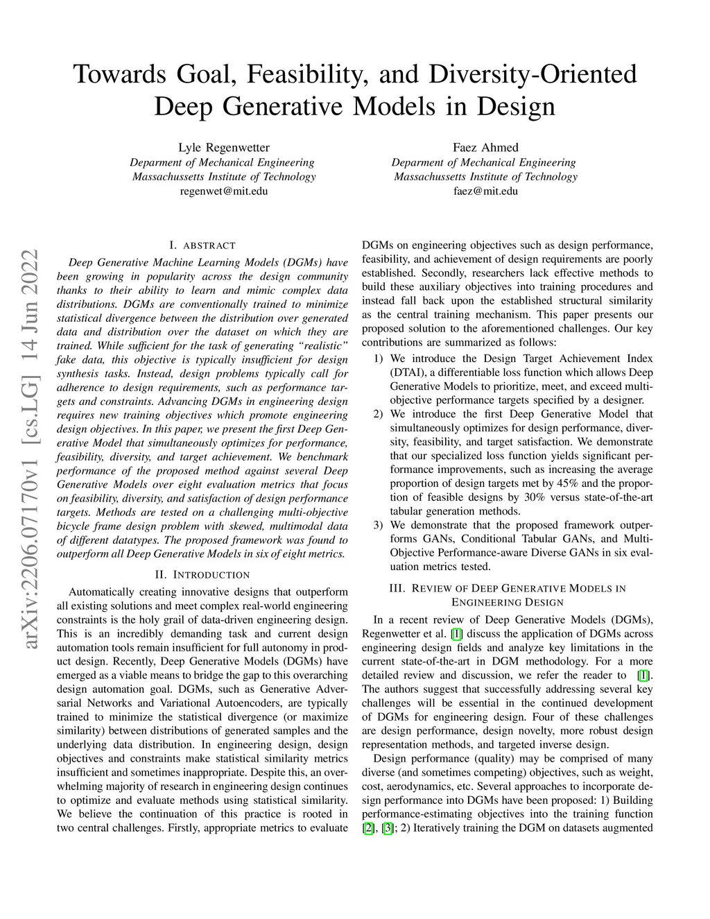 Deep Generative Machine Learning Models (DGMs) have been growing in popularity across the design community thanks to their ability to learn and mimic complex data distributions. DGMs are conventionally trained to minimize statistical divergence between the distribution over generated data and distribution over the dataset on which they are trained. While sufficient for the task of generating "realistic" fake data, this objective is typically insufficient for design synthesis tasks. Instead, design problems typically call for adherence to design requirements, such as performance targets and constraints. Advancing DGMs in engineering design requires new training objectives which promote engineering design objectives. In this paper, we present the first Deep Generative Model that simultaneously optimizes for performance, feasibility, diversity, and target achievement. We benchmark performance of the proposed method against several Deep Generative Models over eight evaluation metrics that focus on feasibility, diversity, and satisfaction of design performance targets. Methods are tested on a challenging multi-objective bicycle frame design problem with skewed, multimodal data of different datatypes. The proposed framework was found to outperform all Deep Generative Models in six of eight metrics.