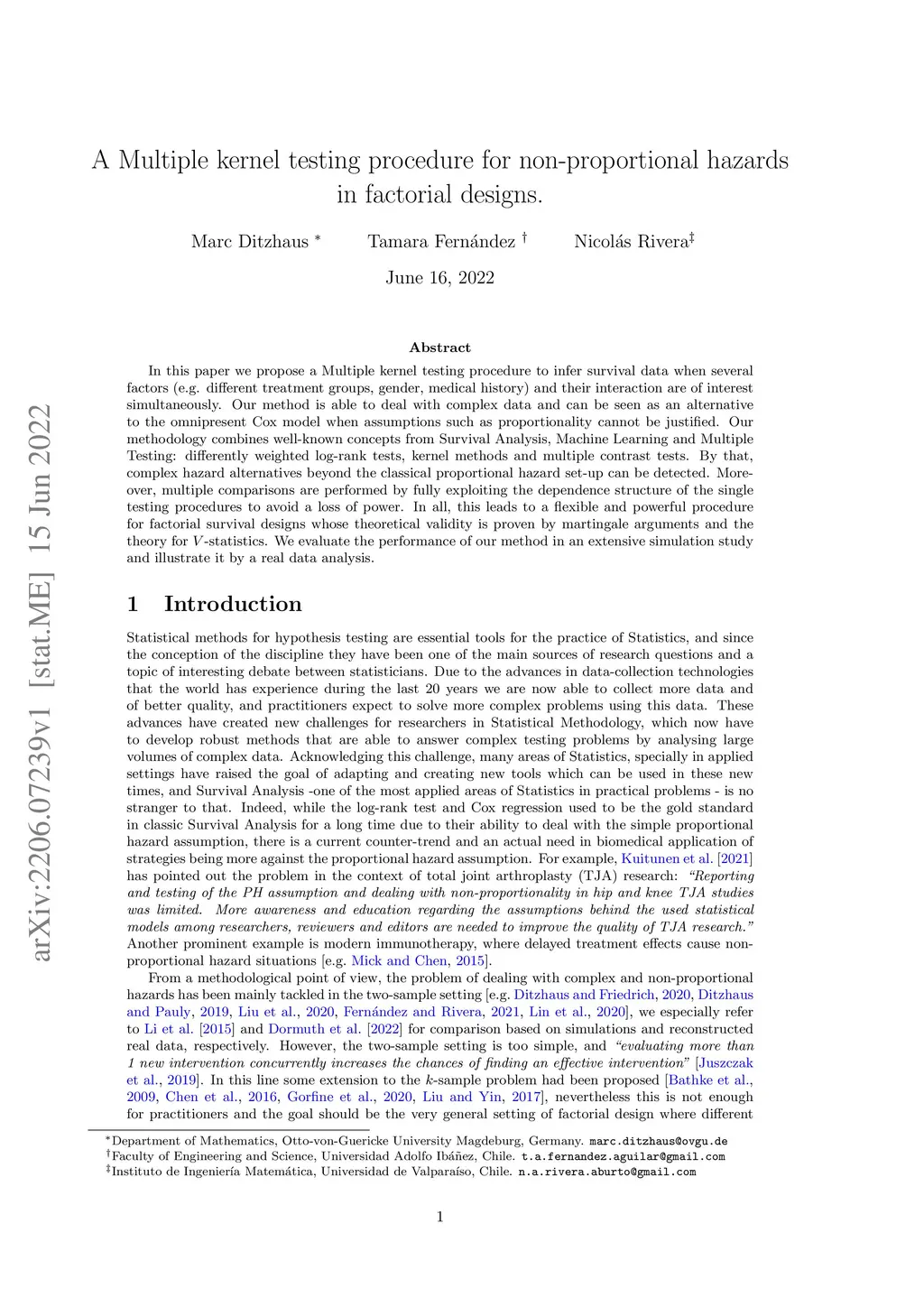 In this paper we propose a Multiple kernel testing procedure to infer survival data when several factors (e.g. different treatment groups, gender, medical history) and their interaction are of interest simultaneously. Our method is able to deal with complex data and can be seen as an alternative to the omnipresent Cox model when assumptions such as proportionality cannot be justified. Our methodology combines well-known concepts from Survival Analysis, Machine Learning and Multiple Testing: differently weighted log-rank tests, kernel methods and multiple contrast tests. By that, complex hazard alternatives beyond the classical proportional hazard set-up can be detected. Moreover, multiple comparisons are performed by fully exploiting the dependence structure of the single testing procedures to avoid a loss of power. In all, this leads to a flexible and powerful procedure for factorial survival designs whose theoretical validity is proven by martingale arguments and the theory for -statistics. We evaluate the performance of our method in an extensive simulation study and illustrate it by a real data analysis.
