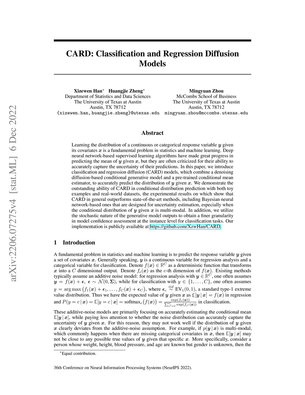 CARD: Classification and Regression Diffusion Models