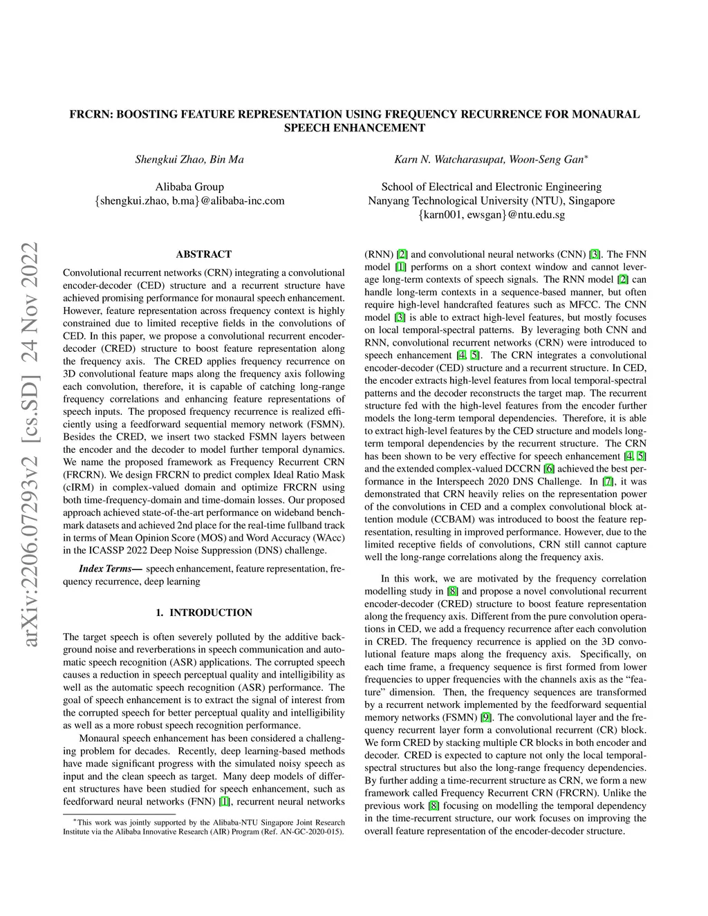 FRCRN: Boosting Feature Representation using Frequency Recurrence for
