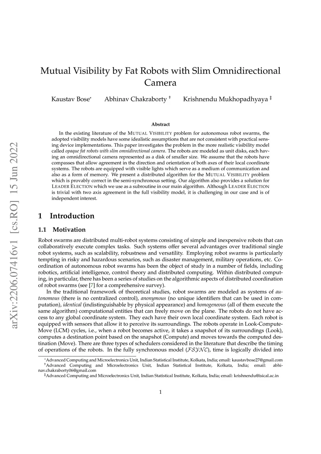 In the existing literature of the Mutual Visibility problem for autonomous robot swarms, the adopted visibility models have some idealistic assumptions that are not consistent with practical sensing device implementations. This paper investigates the problem in the more realistic visibility model called opaque fat robots with slim omnidirectional camera. The robots are modeled as unit disks, each having an omnidirectional camera represented as a disk of smaller size. We assume that the robots have compasses that allow agreement in the direction and orientation of both axes of their local coordinate systems. The robots are equipped with visible lights which serve as a medium of communication and also as a form of memory. We present a distributed algorithm for the Mutual Visibility problem which is provably correct in the semi-synchronous setting. Our algorithm also provides a solution for Leader Election which we use as a subroutine in our main algorithm. Although Leader Election is trivial with two axis agreement in the full visibility model, it is challenging in our case and is of independent interest.