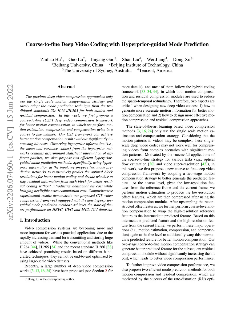Coarse-to-fine Deep Video Coding with Hyperprior-guided Mode Prediction