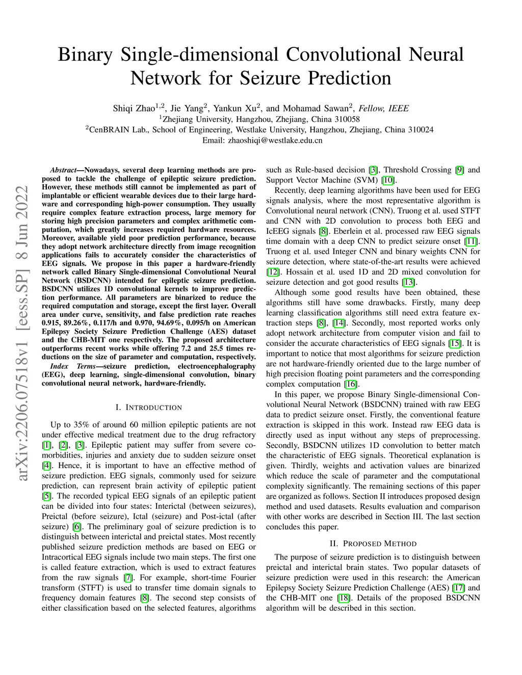 Binary Single-dimensional Convolutional Neural Network for Seizure