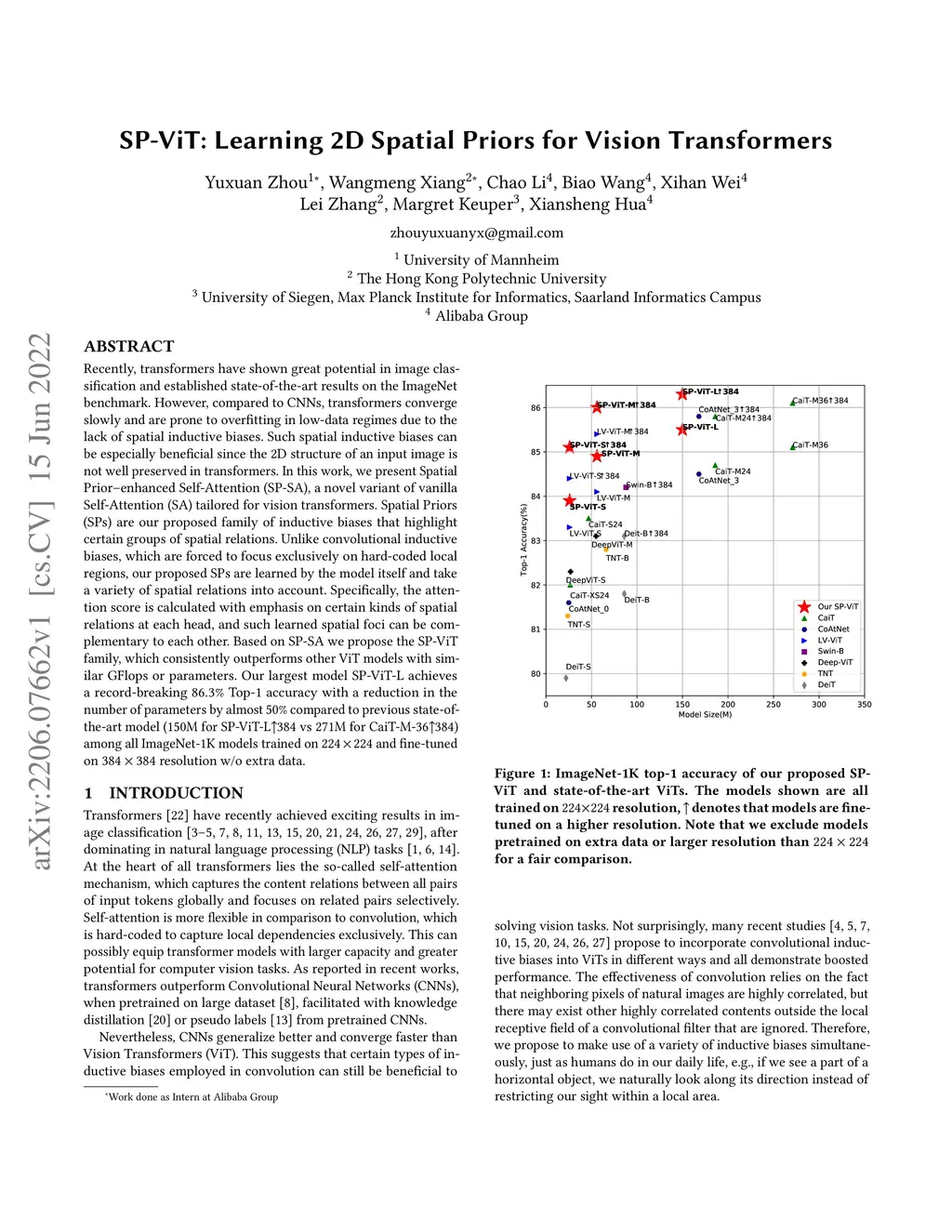 SP-ViT: Learning 2D Spatial Priors for Vision Transformers