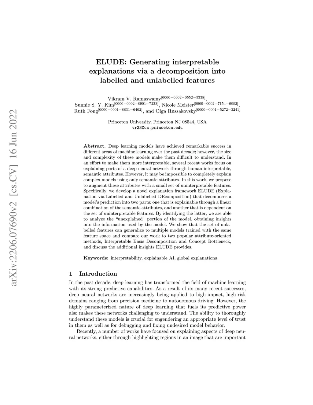 Deep learning models have achieved remarkable success in different areas of machine learning over the past decade; however, the size and complexity of these models make them difficult to understand. In an effort to make them more interpretable, several recent works focus on explaining parts of a deep neural network through human-interpretable, semantic attributes. However, it may be impossible to completely explain complex models using only semantic attributes. In this work, we propose to augment these attributes with a small set of uninterpretable features. Specifically, we develop a novel explanation framework ELUDE (Explanation via Labelled and Unlabelled DEcomposition) that decomposes a model's prediction into two parts: one that is explainable through a linear combination of the semantic attributes, and another that is dependent on the set of uninterpretable features. By identifying the latter, we are able to analyze the "unexplained" portion of the model, obtaining insights into the information used by the model. We show that the set of unlabelled features can generalize to multiple models trained with the same feature space and compare our work to two popular attribute-oriented methods, Interpretable Basis Decomposition and Concept Bottleneck, and discuss the additional insights ELUDE provides.