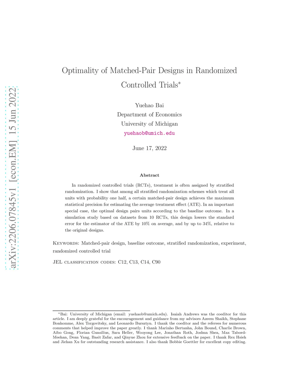 Optimality of Matched-Pair Designs in Randomized Controlled Trials
