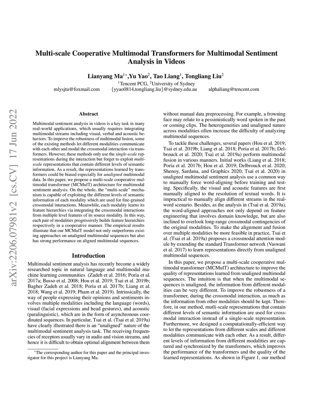 Multi-scale Cooperative Multimodal Transformers for Multimodal Sentiment