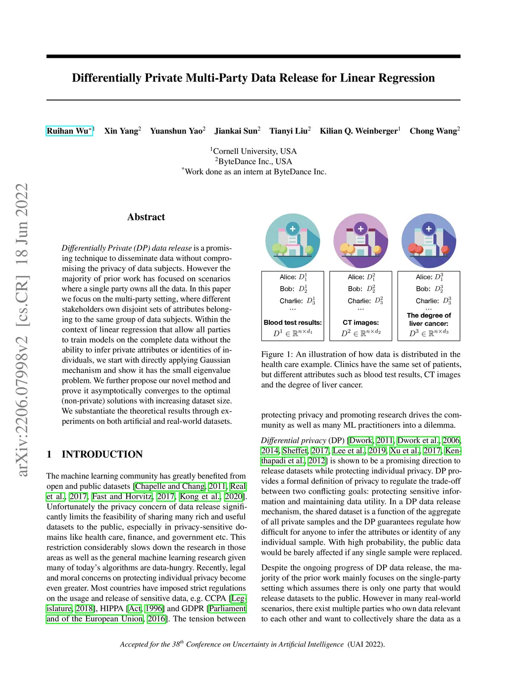 Differentially Private Multi-Party Data Release for Linear Regression