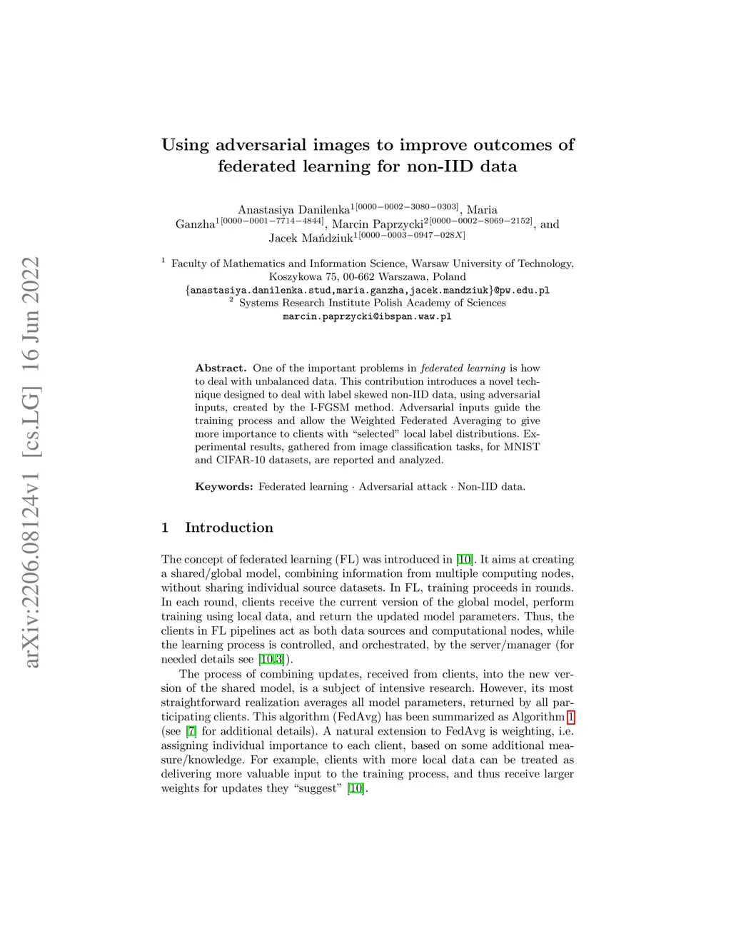 Using adversarial images to improve outcomes of federated learning for