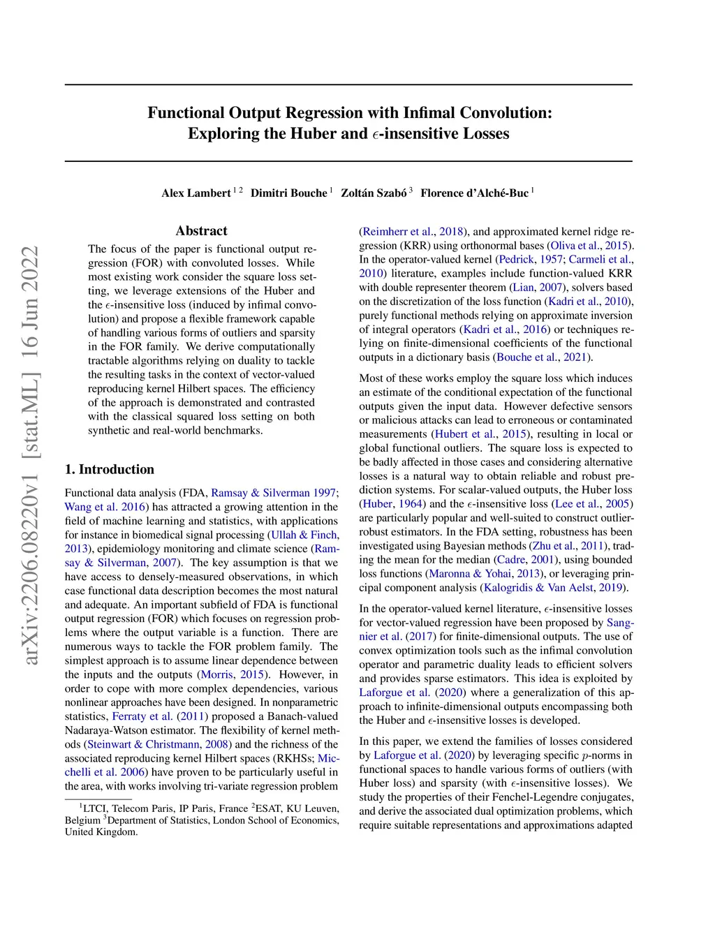 Huber and -insensitive Losses
