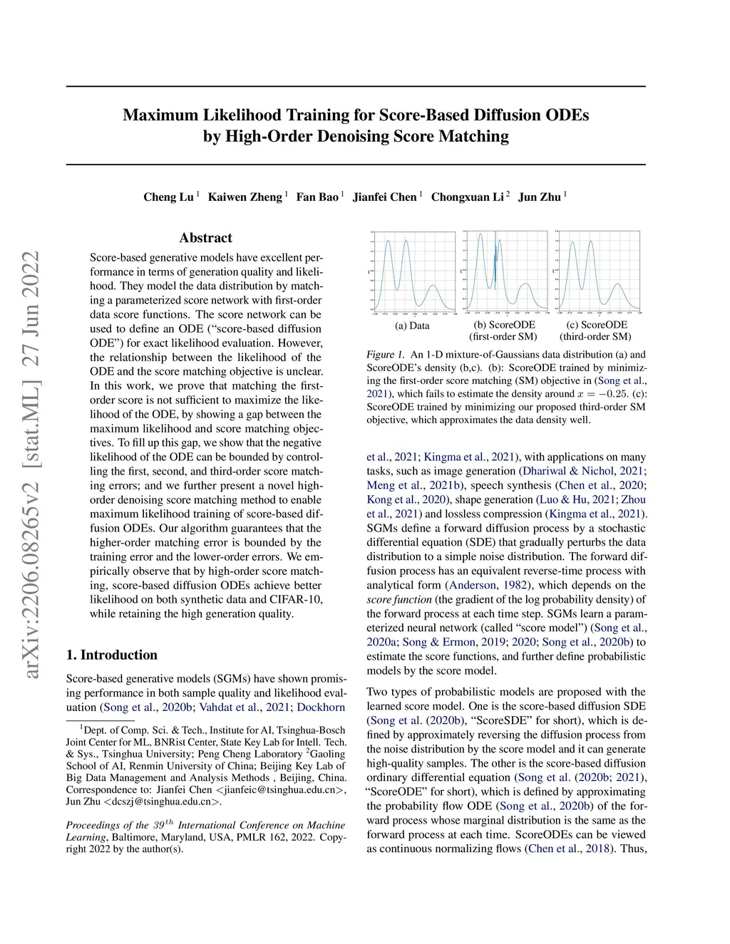 Maximum Likelihood Training for Score-Based Diffusion ODEs by High-Order Denoising Score Matching