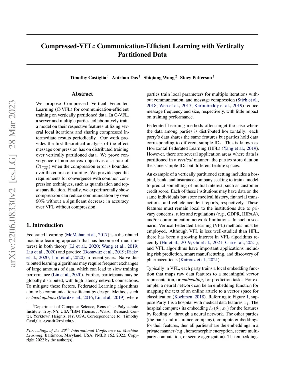 Compressed-VFL: Communication-Efficient Learning with Vertically