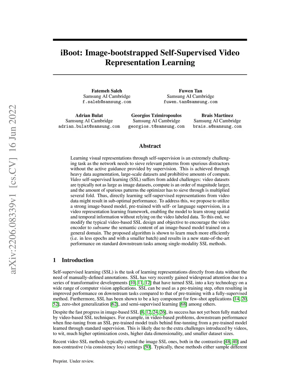 iBoot: Image-bootstrapped Self-Supervised Video Representation Learning