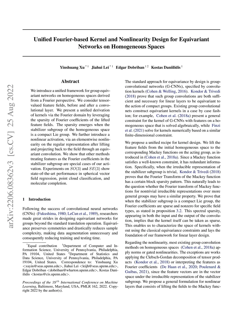 We introduce a unified framework for group equivariant networks on homogeneous spaces derived from a Fourier perspective. We consider tensor-valued feature fields, before and after a convolutional layer. We present a unified derivation of kernels via the Fourier domain by leveraging the sparsity of Fourier coefficients of the lifted feature fields. The sparsity emerges when the stabilizer subgroup of the homogeneous space is a compact Lie group. We further introduce a nonlinear activation, via an elementwise nonlinearity on the regular representation after lifting and projecting back to the field through an equivariant convolution. We show that other methods treating features as the Fourier coefficients in the stabilizer subgroup are special cases of our activation. Experiments on and show state-of-the-art performance in spherical vector field regression, point cloud classification, and molecular completion.