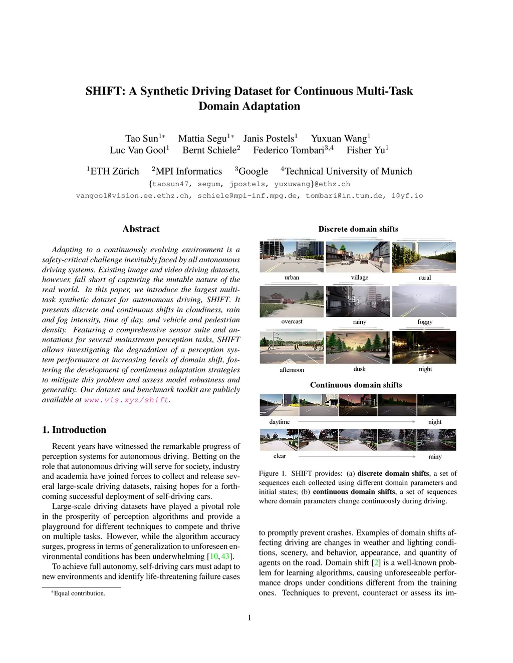 SHIFT: A Synthetic Driving Dataset for Continuous Multi-Task Domain