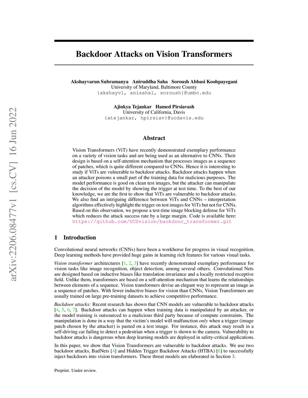 Backdoor Attacks on Vision Transformers
