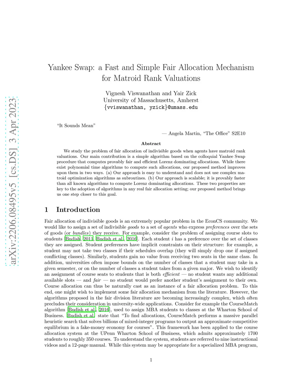 Yankee Swap: a Fast and Simple Fair Allocation Mechanism for Matroid
