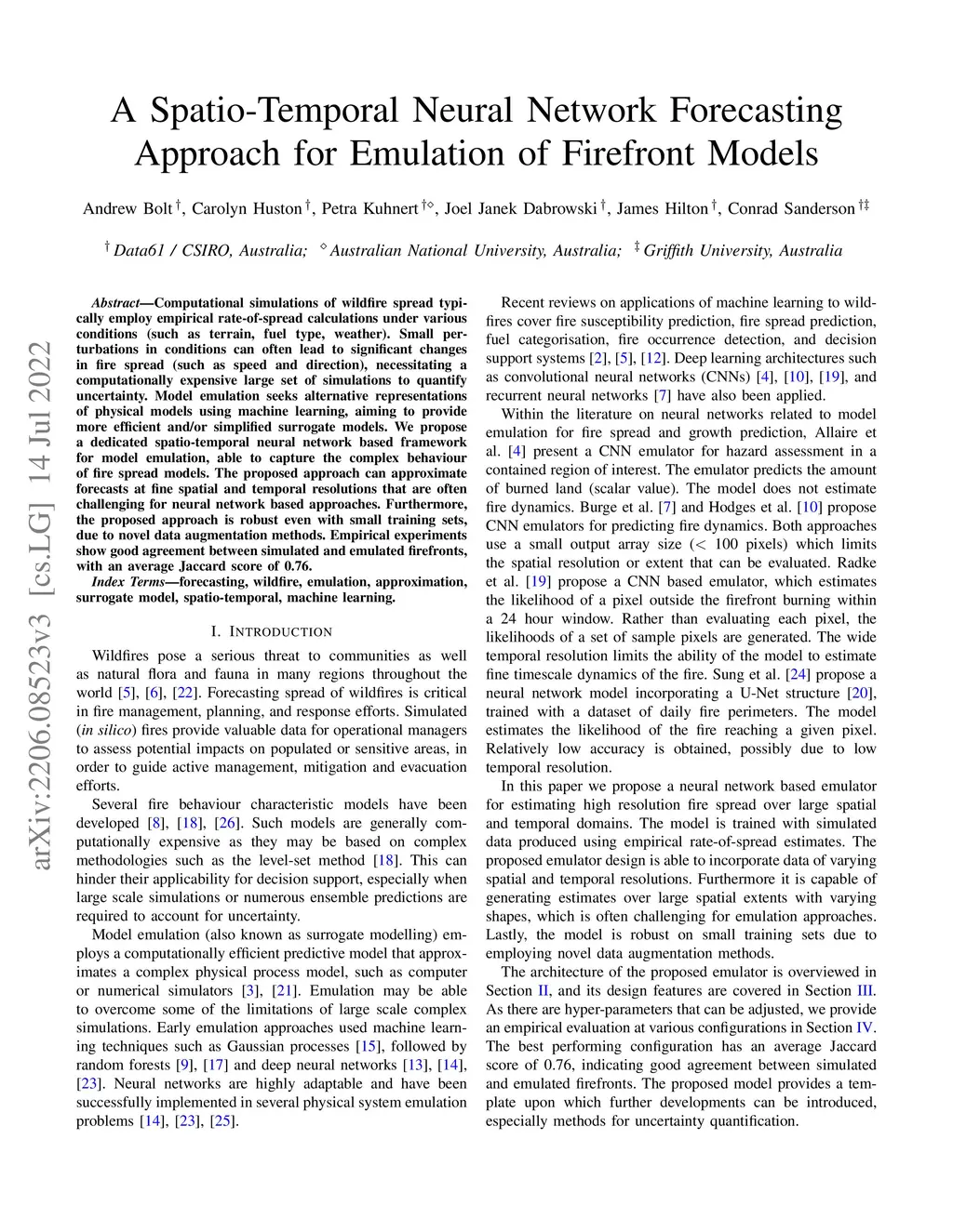 A Spatio-Temporal Neural Network Forecasting Approach for Emulation of Firefront Models