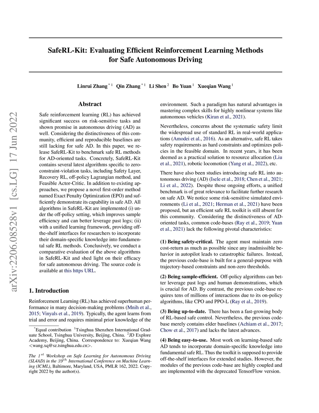 Safe reinforcement learning (RL) has achieved significant success on risk-sensitive tasks and shown promise in autonomous driving (AD) as well. Considering the distinctiveness of this community, efficient and reproducible baselines are still lacking for safe AD. In this paper, we release SafeRL-Kit to benchmark safe RL methods for AD-oriented tasks. Concretely, SafeRL-Kit contains several latest algorithms specific to zero-constraint-violation tasks, including Safety Layer, Recovery RL, off-policy Lagrangian method, and Feasible Actor-Critic. In addition to existing approaches, we propose a novel first-order method named Exact Penalty Optimization (EPO) and sufficiently demonstrate its capability in safe AD. All algorithms in SafeRL-Kit are implemented (i) under the off-policy setting, which improves sample efficiency and can better leverage past logs; (ii) with a unified learning framework, providing off-the-shelf interfaces for researchers to incorporate their domain-specific knowledge into fundamental safe RL methods. Conclusively, we conduct a comparative evaluation of the above algorithms in SafeRL-Kit and shed light on their efficacy for safe autonomous driving. The source code is available at \href{ https://github.com/zlr20/saferl_kit}{this https URL}.
