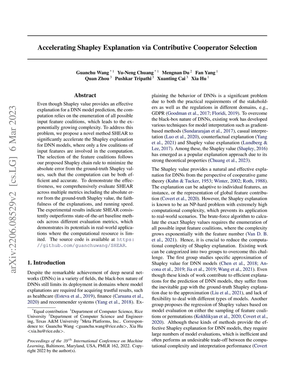 Accelerating Shapley Explanation via Contributive Cooperator Selection